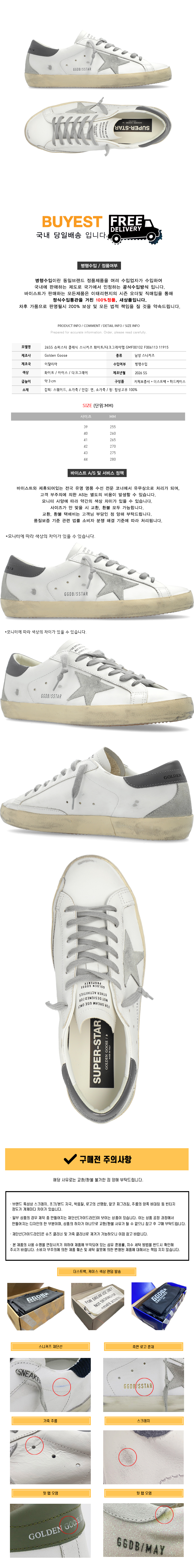 * 모 델 명 : 26SS 슈퍼스타 클래식 스니커즈 화이트/다크그레이탭 GMF00102 F006113 11915