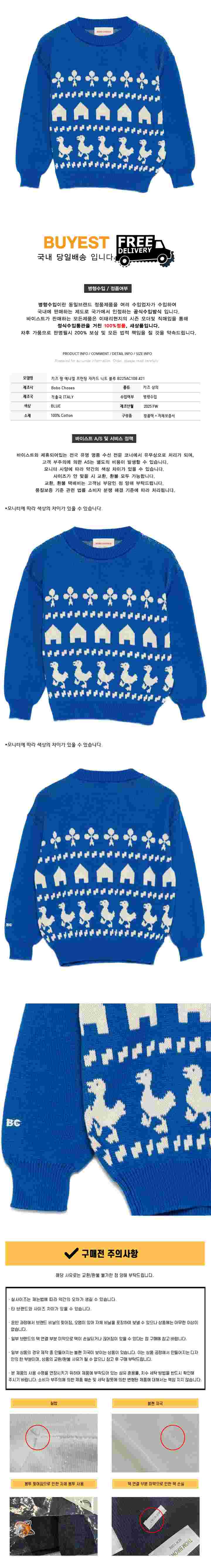 * 모 델 명 : 키즈 팜 애니멀 프린팅 자카드 니트 블루 B225AC108 421