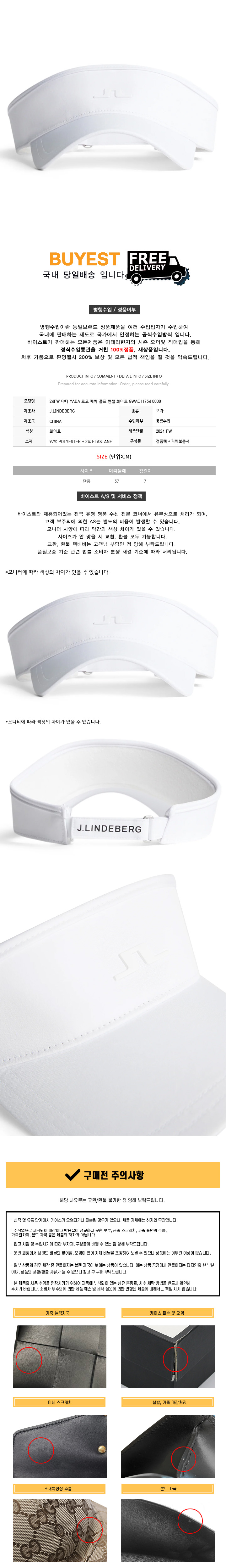 * 모 델 명 : 24FW 야다 YADA 로고 패치 골프 썬캡 화이트 GWAC11754 0000