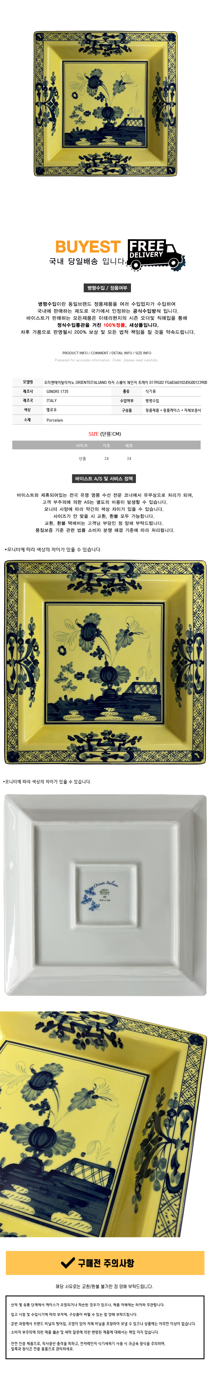 * 모 델 명 : 오리엔테이탈리아노 ORIENTEITALIANO 라지 스퀘어 체인지 트레이 24CM 옐로우 017RG02 FG6836010245G00123900