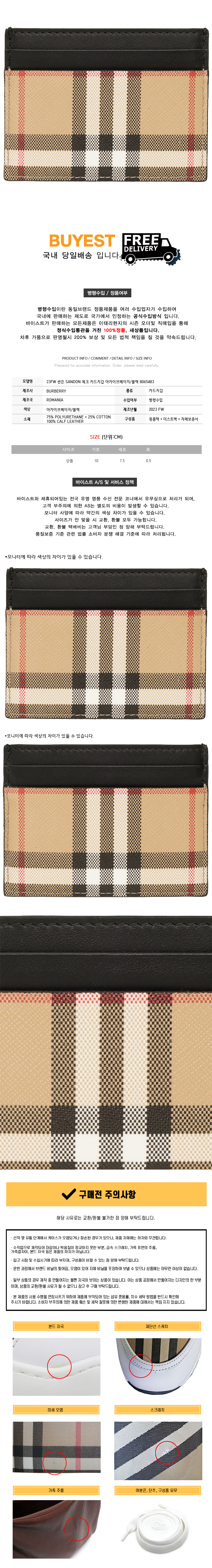 * 모 델 명 : 23FW 샌든 SANDON 체크 카드지갑 아카이브베이지/블랙 8065483
