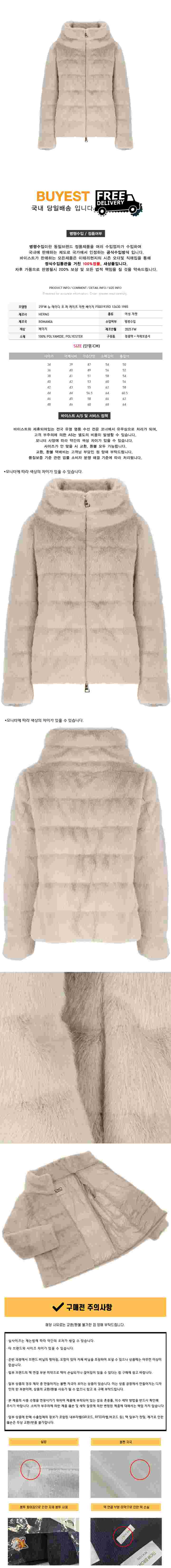 * 모 델 명 : 25FW 뉴 레이디 포 퍼 케이프 자켓 베이지 PI001935D 12630 1985