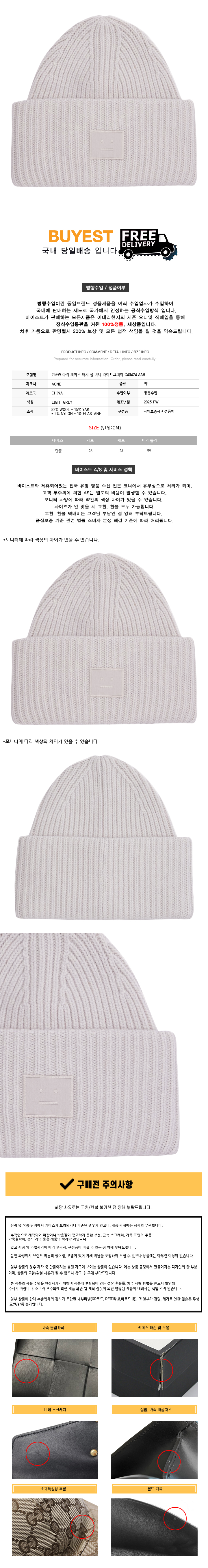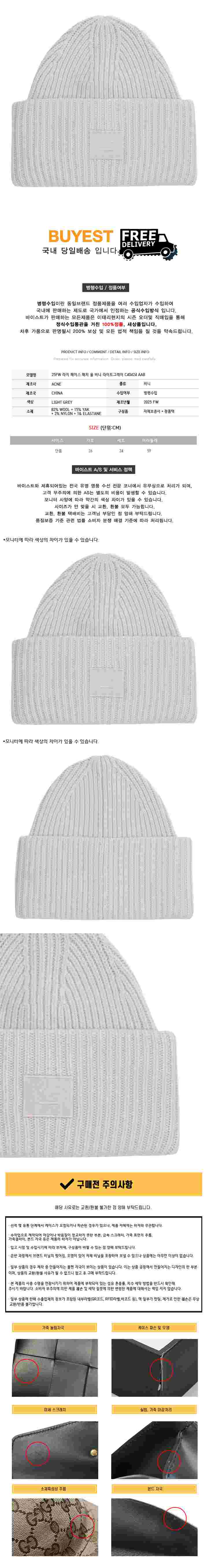 * 모 델 명 : 25FW 라지 페이스 패치 울 비니 라이트그레이 C40424 AAB