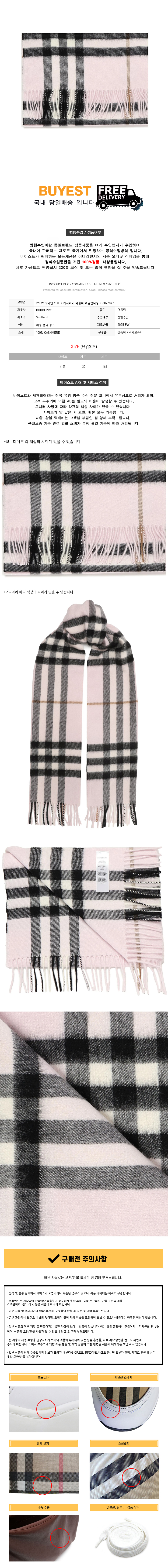 * 모 델 명 : 25FW 자이언트 체크 캐시미어 머플러 페일캔디핑크 8077877