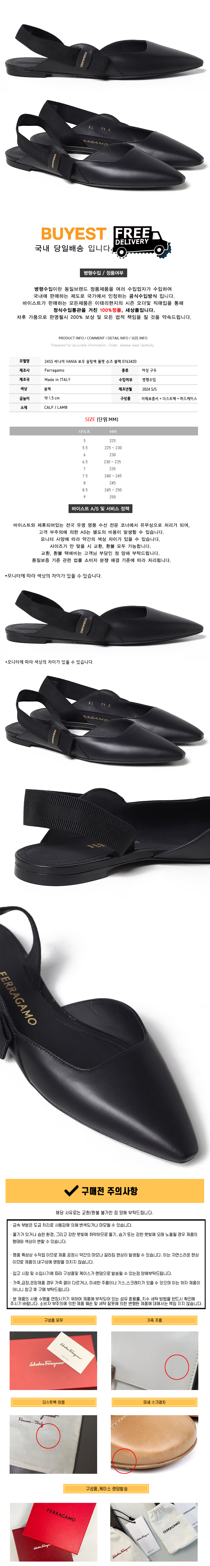 * 모 델 명 : 24SS 바니아 VANIA 보우 슬링백 플랫 슈즈 블랙 0763420