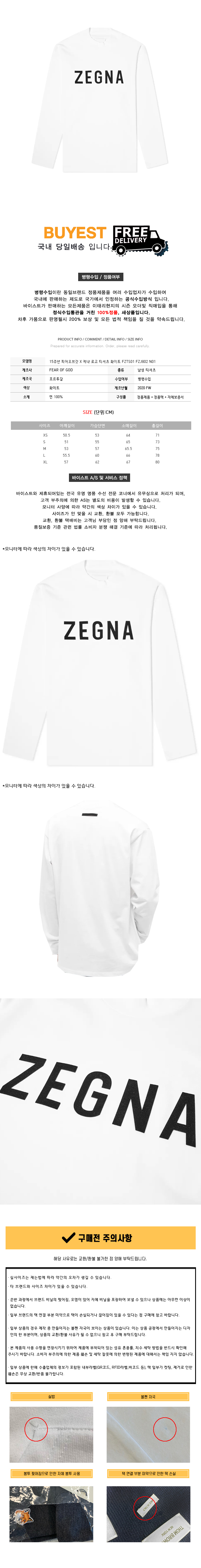 * 모 델 명 : 피어오브갓 X 제냐 로고 티셔츠 화이트 FZTS01 FZJ802 N01