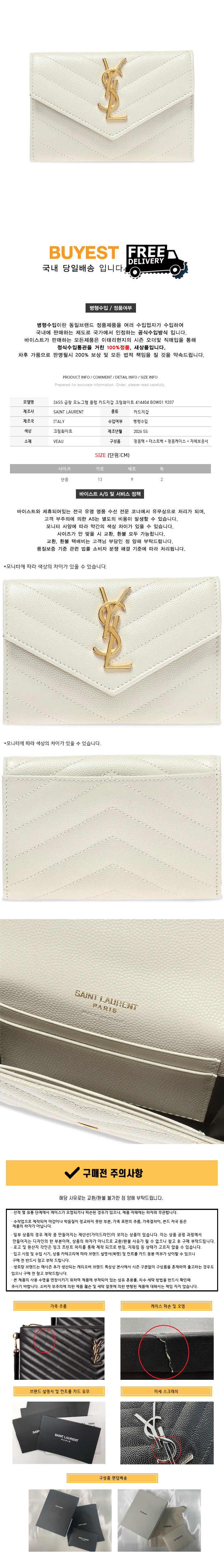 * 모 델 명 : 26SS 금장 모노그램 플랩 카드지갑 크림화이트 414404 BOW01 9207