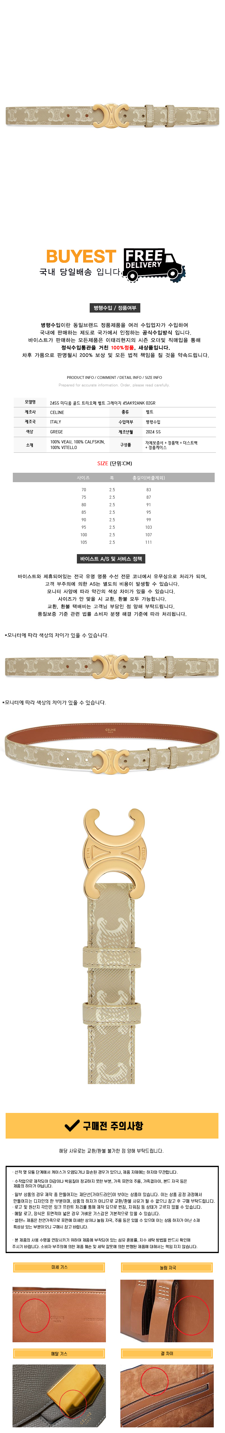 * 모 델 명 : 24SS 미디움 골드 트리오페 벨트 그레이지 45AK92ANK 02GR