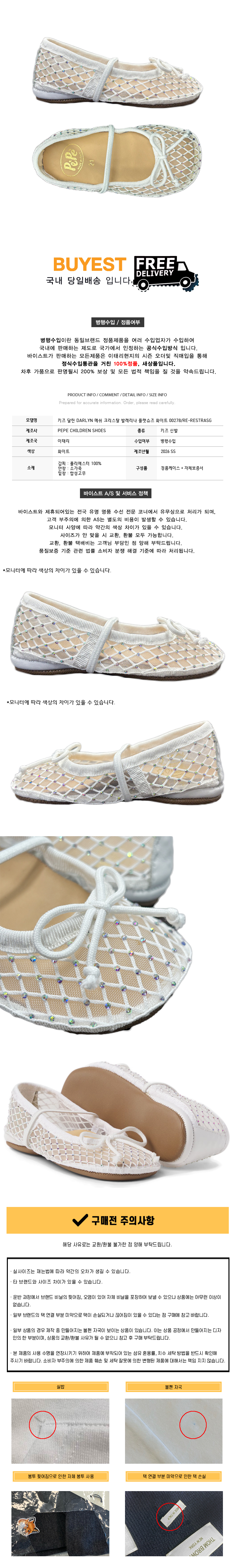 키즈 달린 DARLYN 메쉬 크리스탈 발레리나 플랫슈즈 화이트 00278/RE-RESTRASG