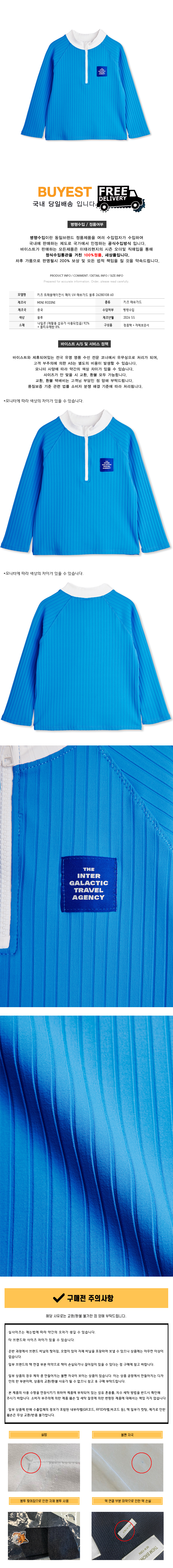 * 모 델 명 : 키즈 트래블에이전시 패치 UV 래쉬가드 블루 26280108 60