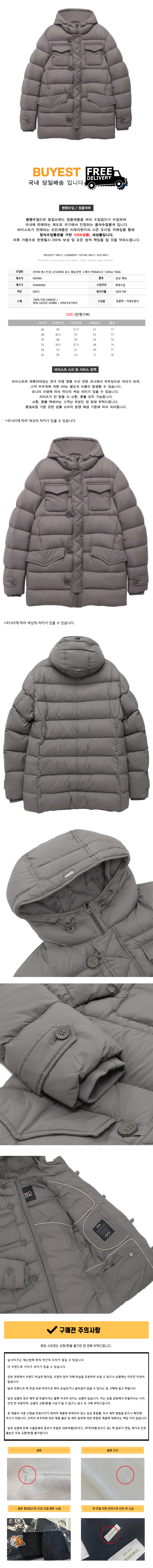 * 모 델 명 : 25FW 레스키모 LESKIMO 후드 패딩자켓 그레이 PI004ULE 12456Z 9406