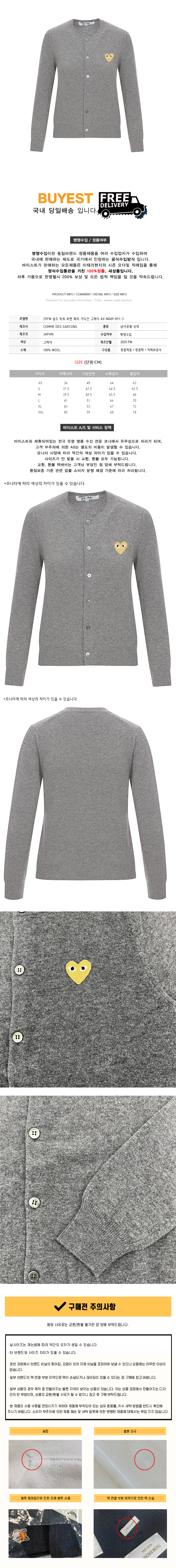 * 모 델 명 : 25FW 골드 하트 와펜 패치 가디건 그레이 AX-N049-051-3