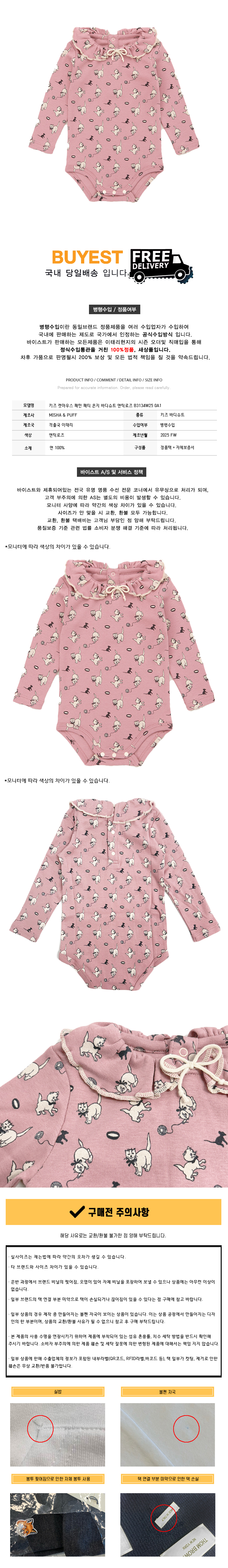 * 모 델 명 : 키즈 캣마우스 패턴 패티 온지 바디슈트 앤틱로즈 B3134W25 0A1