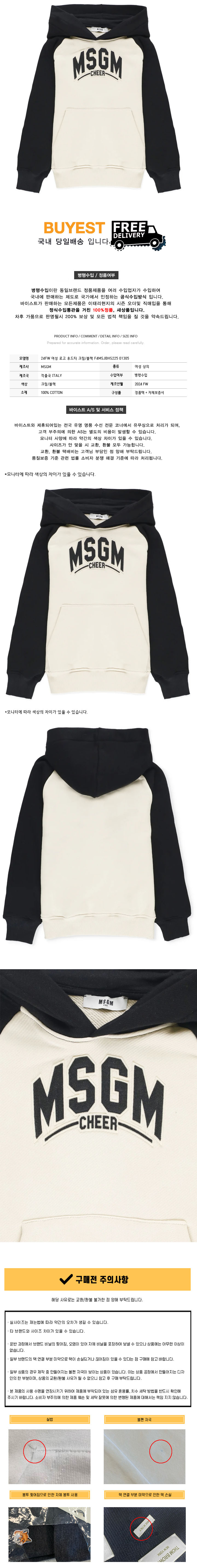 * 모 델 명 : 24FW 여성 로고 후드티 크림/블랙 F4MSJBHS225 01305