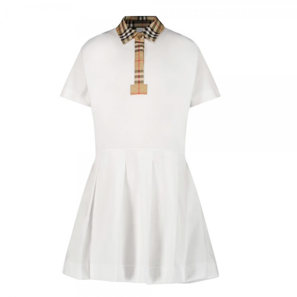 ◆키즈◆23SS 여성 빈티지 체크 카라 플리츠 원피스 화이트 8053562