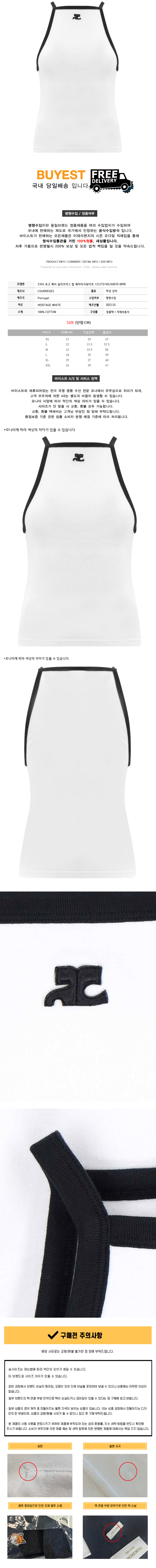 * 모 델 명 : 23SS 로고 패치 슬리브리스 탑 헤리티지화이트 123JTO145JS0070 0098
