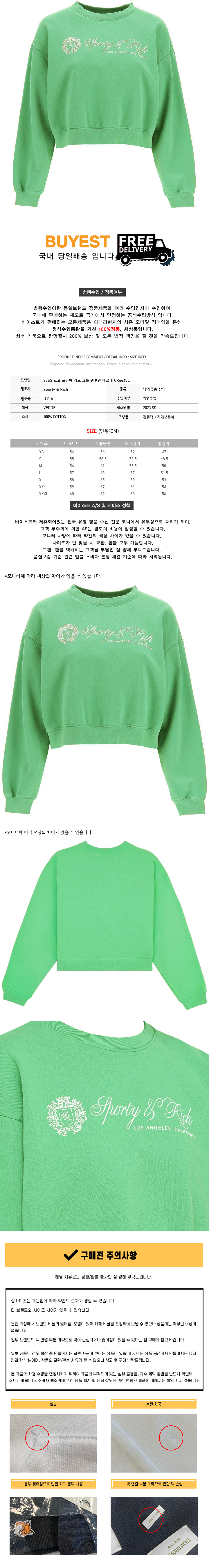* 모 델 명 : 23SS 로고 프린팅 기모 크롭 맨투맨 베르데 CR664VE