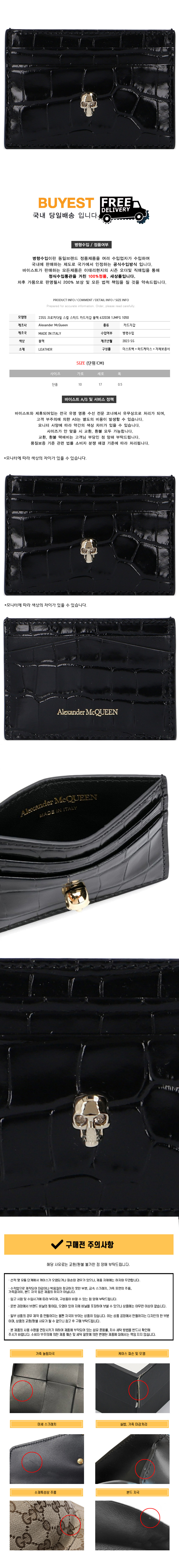 * 모 델 명 : 23SS 크로커다일 스컬 스터드 카드지갑 블랙 632038 1JMFG 1050