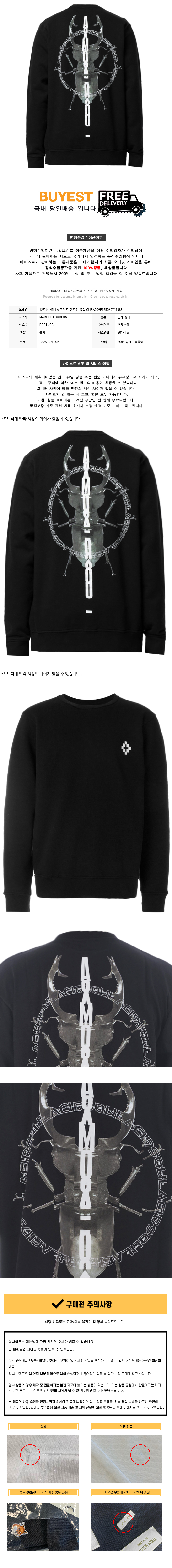 * 모 델 명 : 12주년 MILLA 프린트 맨투맨 블랙 CMBA009F175060711088