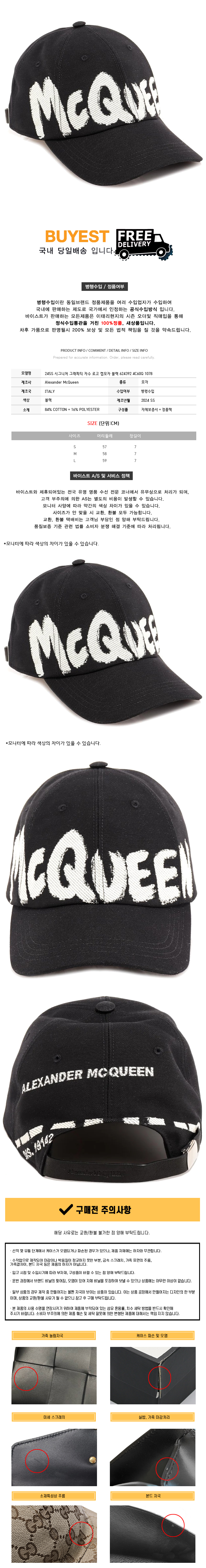 * 모 델 명 : 24SS 시그니처 그래피티 자수 로고 캡모자 블랙 624392 4C60Q 1078
