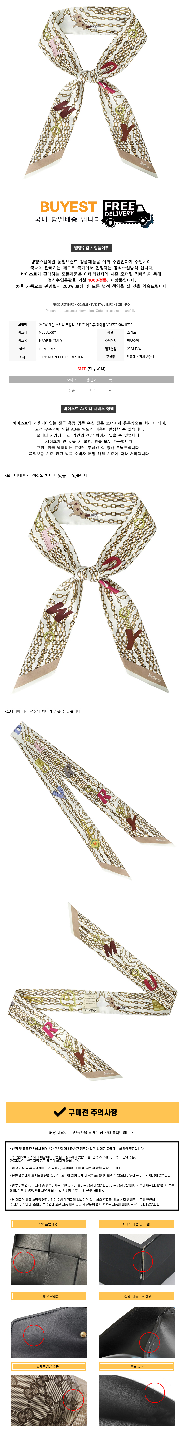 * 모 델 명 : 24FW 체인 스키니 트윌리 스카프 에크루/메이플 VS4770 986 H702