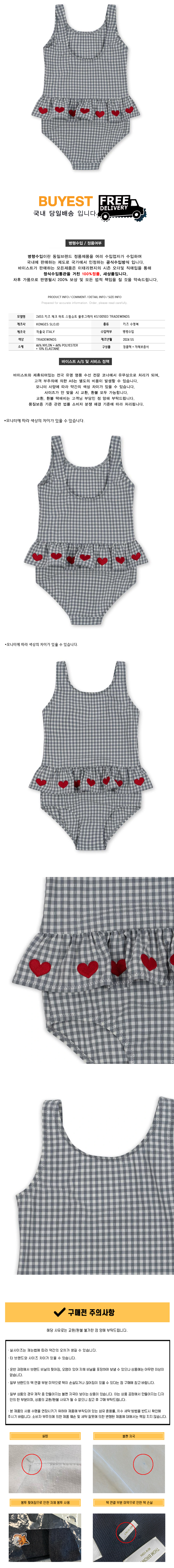 * 모 델 명 : 24SS 키즈 체크 하트 스윔슈트 블루그레이 KS100503 TRADEWINDS
