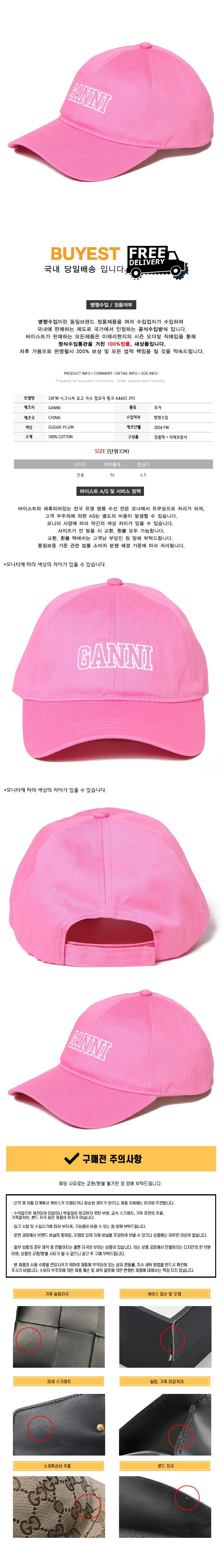 * 모 델 명 : 24FW 시그니처 로고 자수 캡모자 핑크 A4603 393