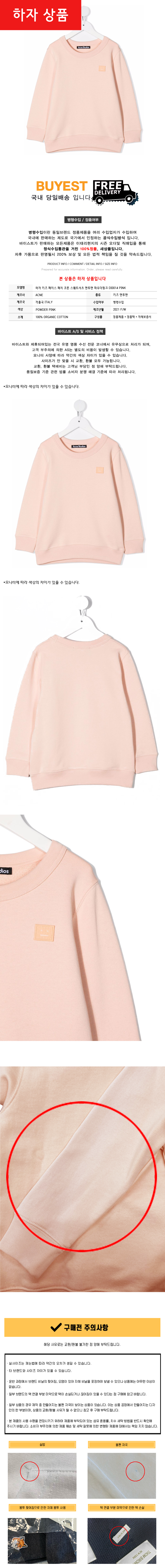 * 모 델 명 : 하자 키즈 페이스 패치 코튼 스웨트셔츠 맨투맨 파우더핑크 DI0014 PINK