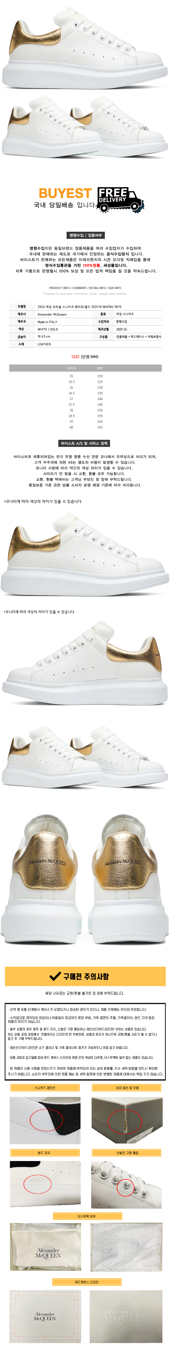 * 모 델 명 : 25SS 여성 오버솔 스니커즈 화이트/골드 553770 WHFBU 9075