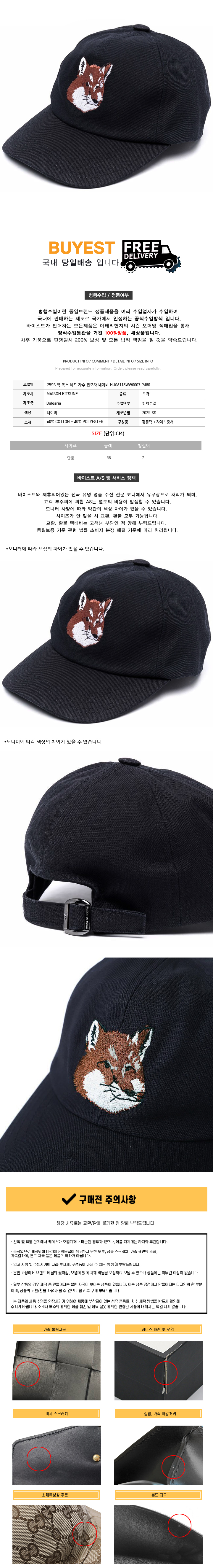 * 모 델 명 : 25SS 빅 폭스 헤드 자수 캡모자 네이비 HU06118WW0007 P480