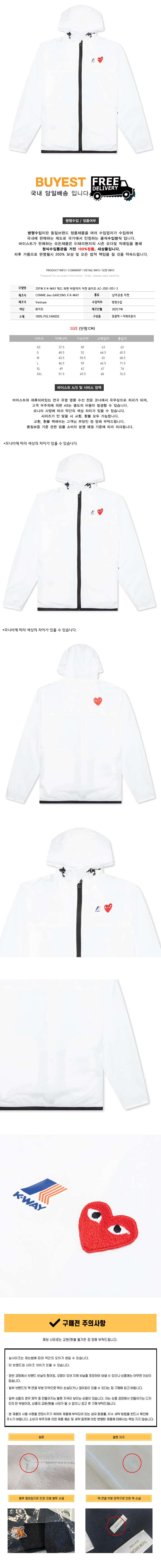 * 모 델 명 : 25FW X K-WAY 레드 와펜 바람막이 자켓 화이트 AZ-J501-051-3