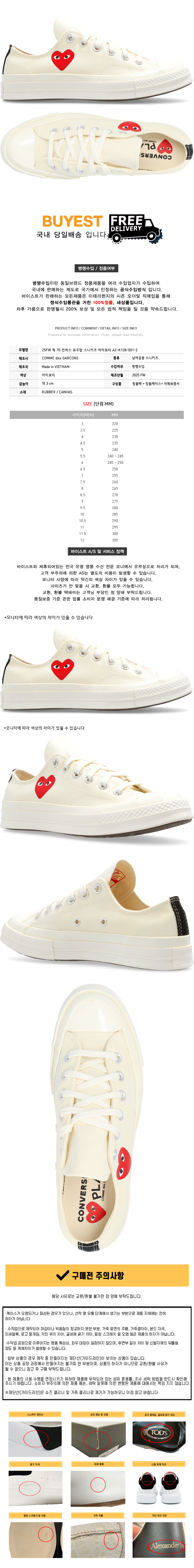 * 모 델 명 : 25FW 척 70 컨버스 로우탑 스니커즈 아이보리 AZ-K128-001-2