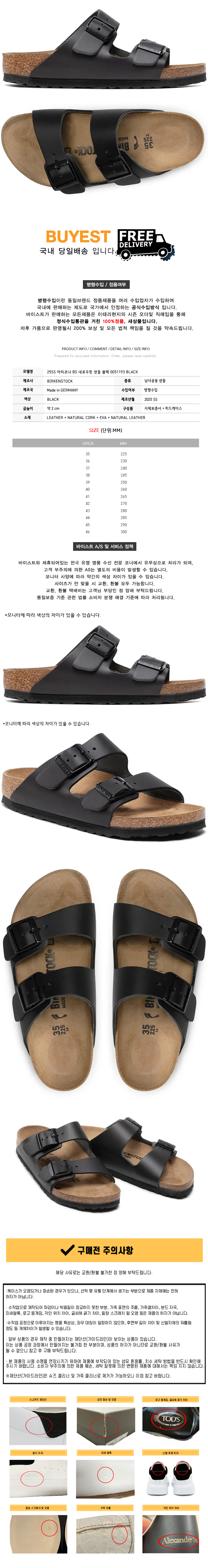 * 모 델 명 : 25SS 아리조나 BS 네로우핏 샌들 블랙 0051193 BLACK