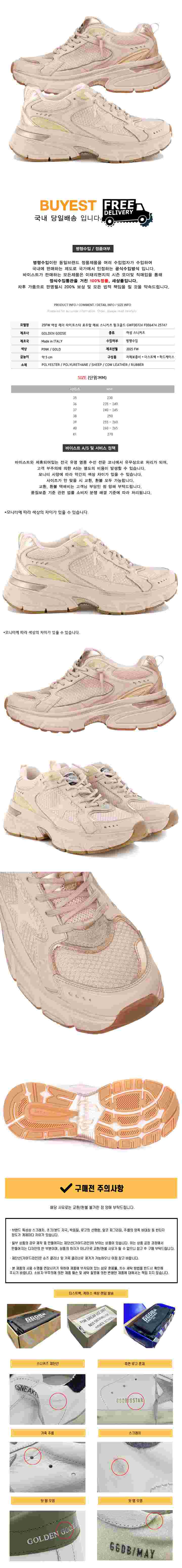 * 모 델 명 : 25FW 여성 레더 라이트스타 로우탑 메쉬 스니커즈 핑크골드 GWF00724 F006474 25747