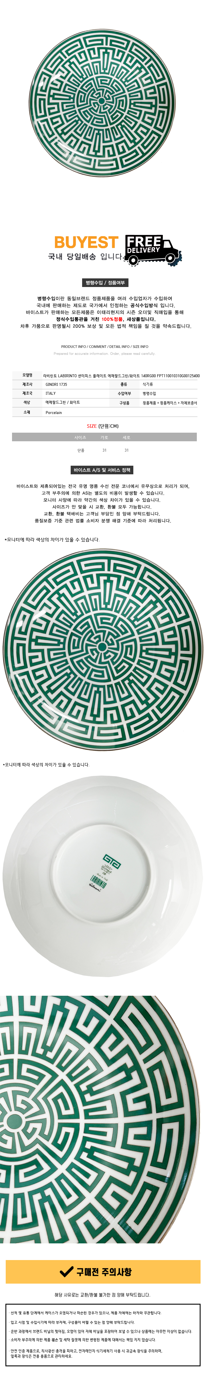 * 모 델 명 : 라비린토 LABIRINTO 센터피스 플레이트 31CM 에메랄드그린/화이트 140RG00 FPT110010310G00125400