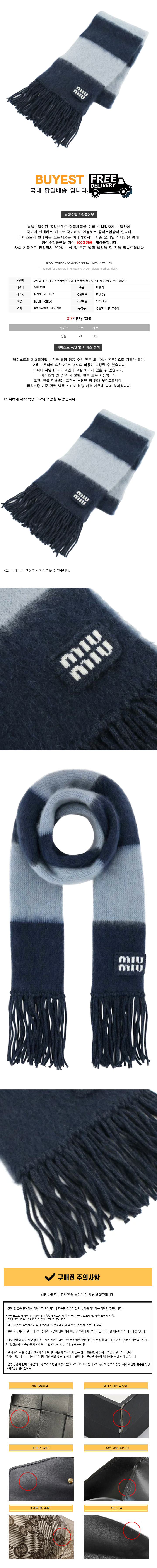 * 모 델 명 : 25FW 로고 패치 스트라이프 모헤어 머플러 블루/씨엘로 5FS094 2CVE F0WYH