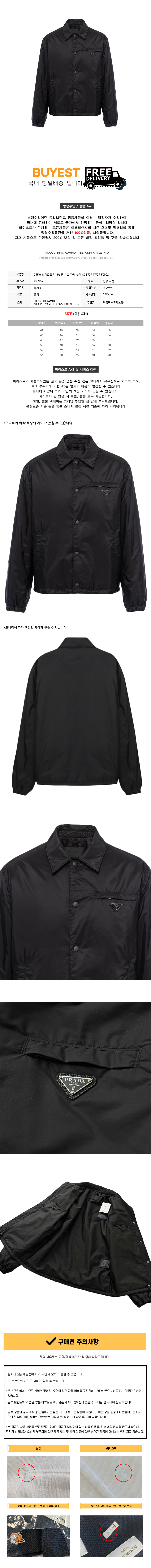 * 모 델 명 : 25FW 삼각로고 리나일론 셔츠 자켓 블랙 SGB737 1WQ9 F0002