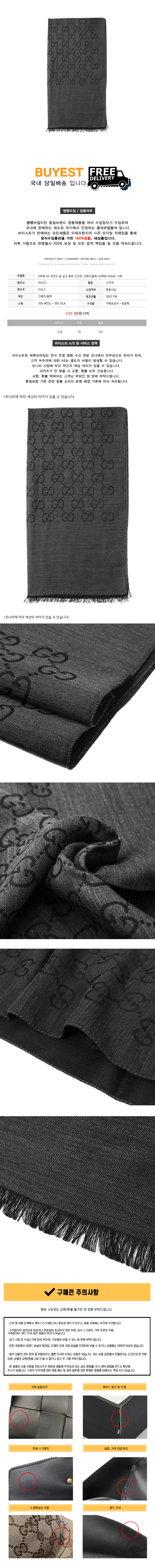 * 모 델 명 : 25FW GG 자카드 울 실크 투톤 스카프 그레이/블랙 165904 3G646 1100