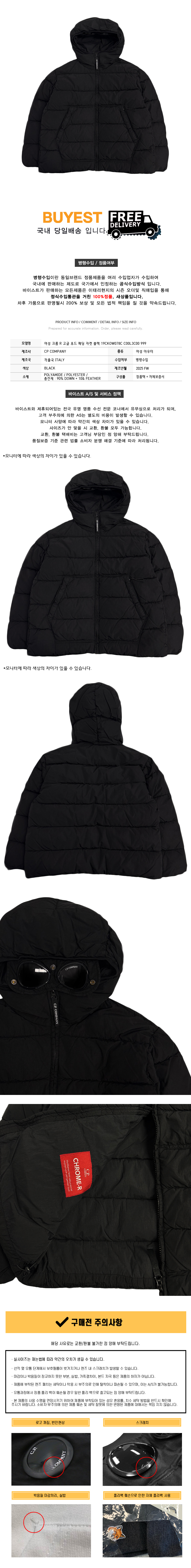 * 모 델 명 : 여성 크롬 R 고글 후드 패딩 자켓 블랙 19CKOW078C C00L3C00 999