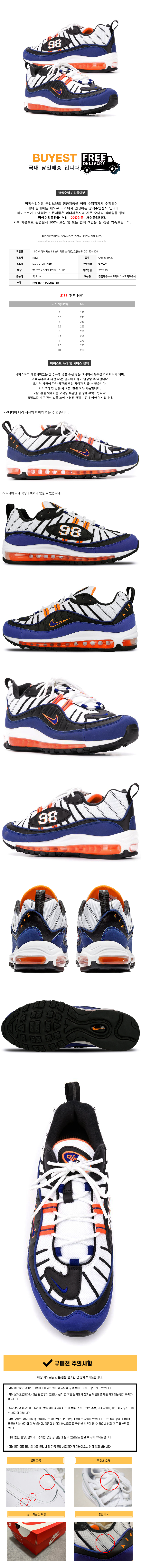 * 모 델 명 : 14주년 에어맥스 98 스니커즈 화이트/로얄블루 CD1536 100