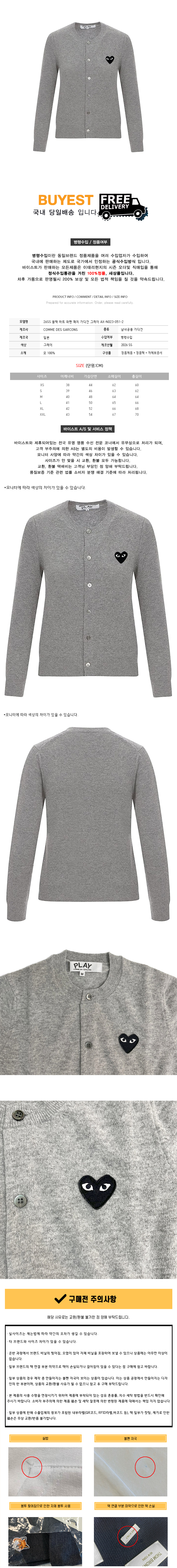* 모 델 명 : 26SS 블랙 하트 와펜 패치 가디건 그레이 AX-N023-051-2