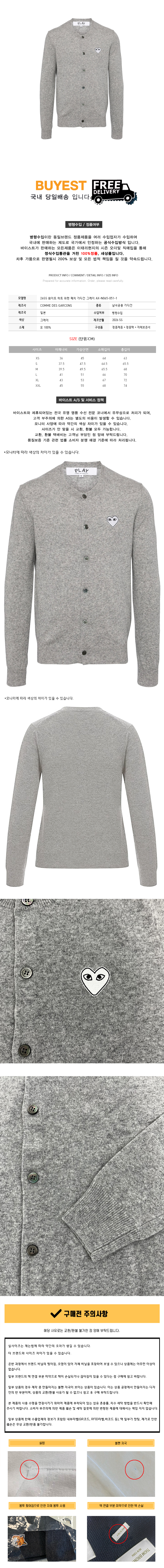 * 모 델 명 : 26SS 화이트 하트 와펜 패치 가디건 그레이 AX-N065-051-1