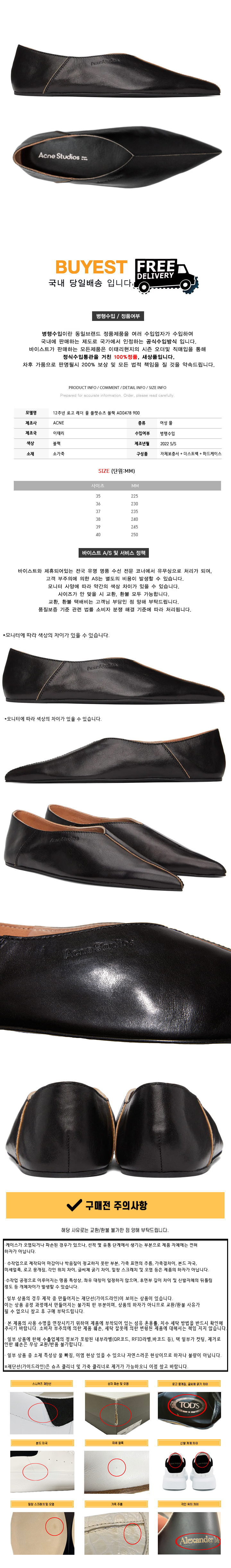 * 모 델 명 : 15주년 로고 레더 뮬 플랫슈즈 블랙 AD0478 900