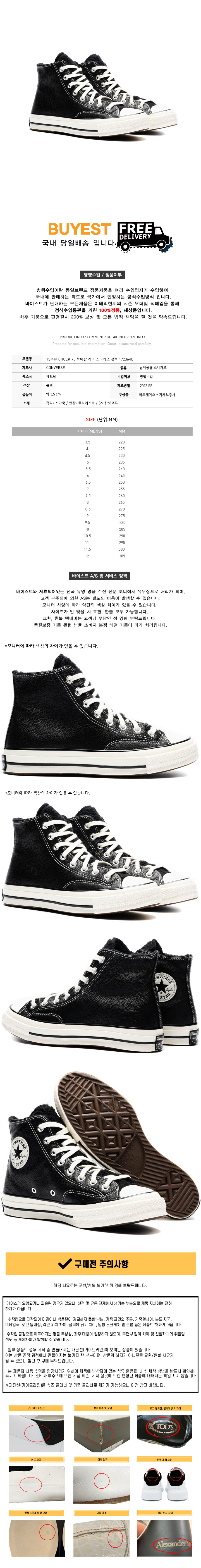 * 모 델 명 : 15주년 CHUCK 70 하이탑 레더 스니커즈 블랙 172364C