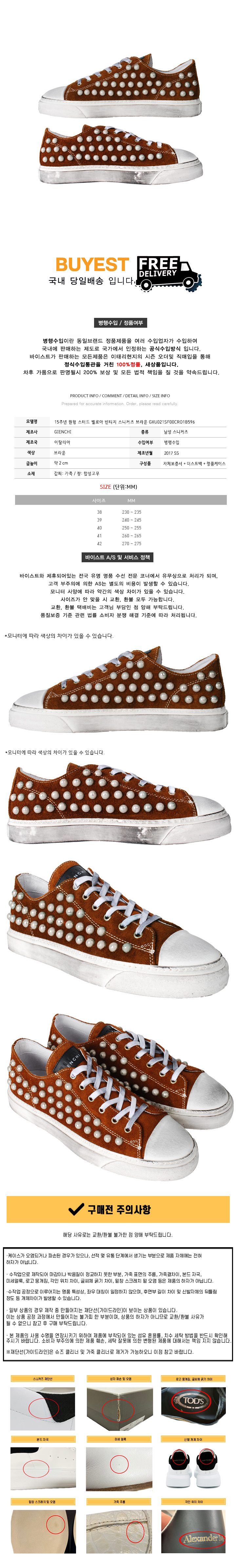 * 모 델 명 : 15주년 원형 스터드 벨로아 빈티지 스니커즈 브라운 GXU021SF00CRO1B596