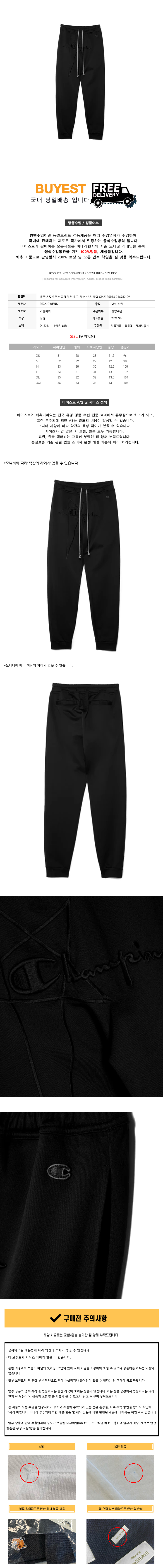 * 모 델 명 : 릭오웬스 X 챔피온 로고 자수 팬츠 블랙 CM21S0016 216782 09
