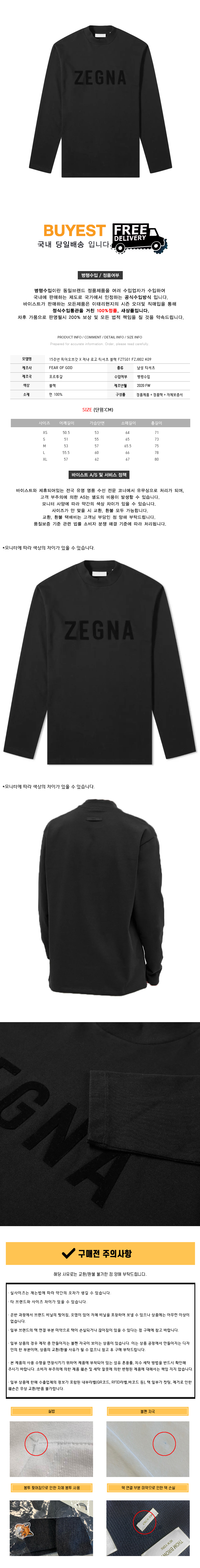* 모 델 명 : 피어오브갓 X 제냐 로고 티셔츠 블랙 FZTS01 FZJ802 K09