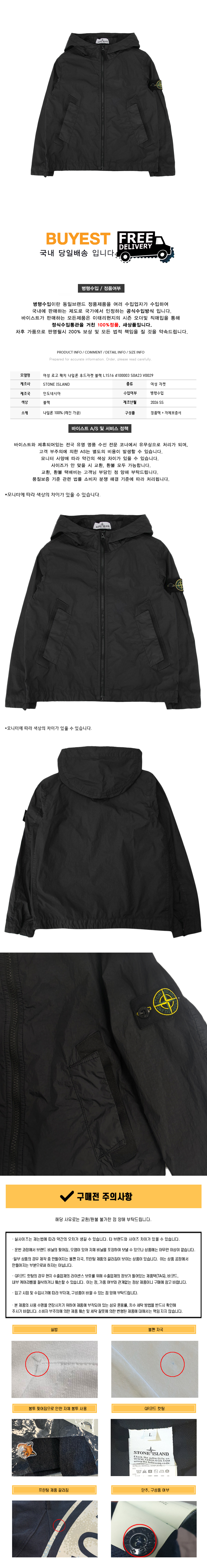 * 모 델 명 : 여성 로고 패치 나일론 후드자켓 블랙 L1S16 4100003 S0A23 V0029