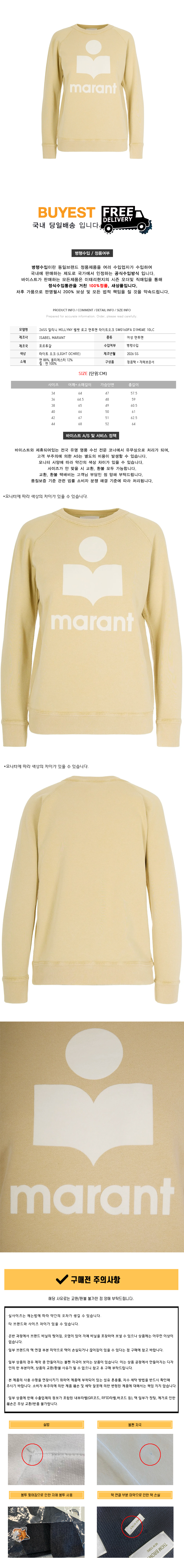 * 모 델 명 : 26SS 밀리니 MILLYNY 벨벳 로고 맨투맨 라이트오크 SW0160FA D1M04E 10LC