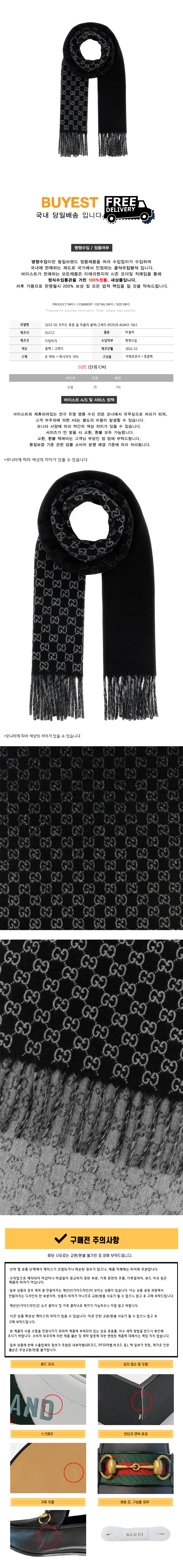 * 모 델 명 : 26SS GG 자카드 투톤 울 머플러 블랙/그레이 852038 4GAKX 1063